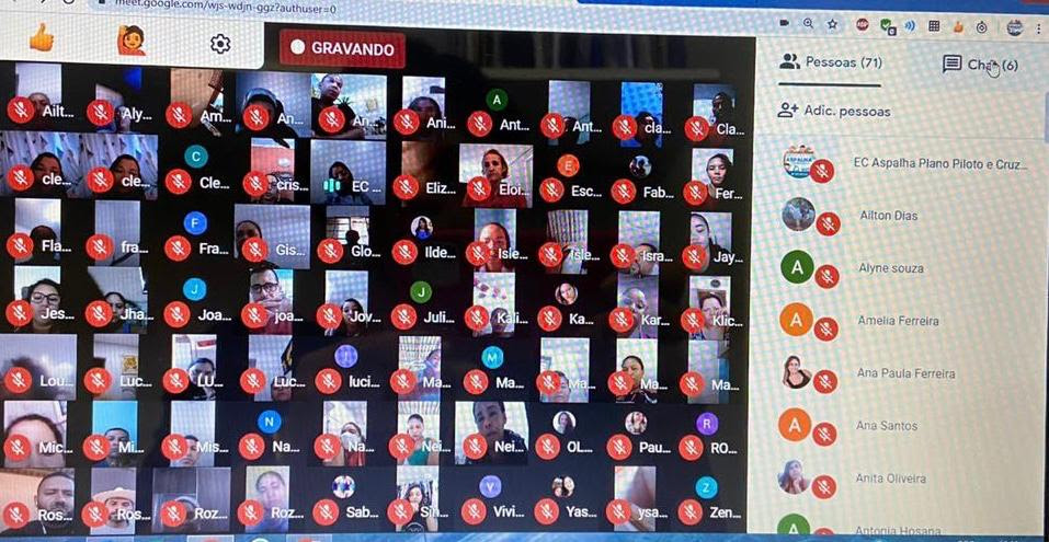 Esta segunda-feira (22) foi um dia de ajuda mútua e esclarecimentos a professores, estudantes e seus familiares. A vice-diretora Juliana Cândida Pereira, Escola Classe Aspalha, reuniu a equipe gestora da unidade e bateu na tecla que vem batendo seguidamente: “Estamos realizando reuniões virtuais com as famílias por meio de aplicativos de vídeo e passando todas as instruções sobre o uso da plataforma, a necessidade da autorização para uso das ferramentas Google, a disponibilidade das atividades impressas e demais assuntos e dúvidas relacionadas”. A escola, que atende 221 estudantes do 1º ao 5º ano do ensino fundamental, faz parte de uma rede integradora de crianças em situação de vulnerabilidade social residentes no Varjão, núcleos rurais do Lago Norte, Paranoá Park, Paranoá e Itapoã.