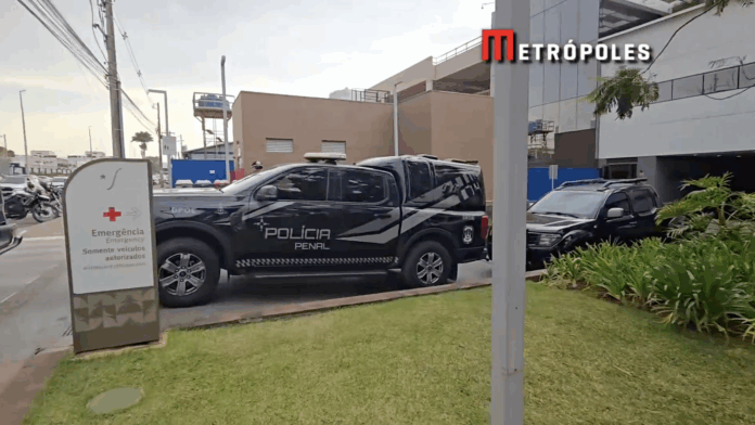 Bolsonaro foi levado ao hospital acompanhado da ex-primeira-dama Michelle Bolsonaro e de policiais penais responsáveis pela vigilância, conforme exigência judicial.