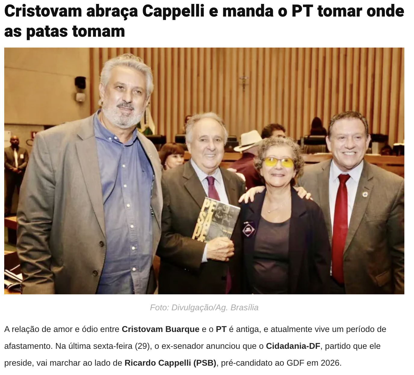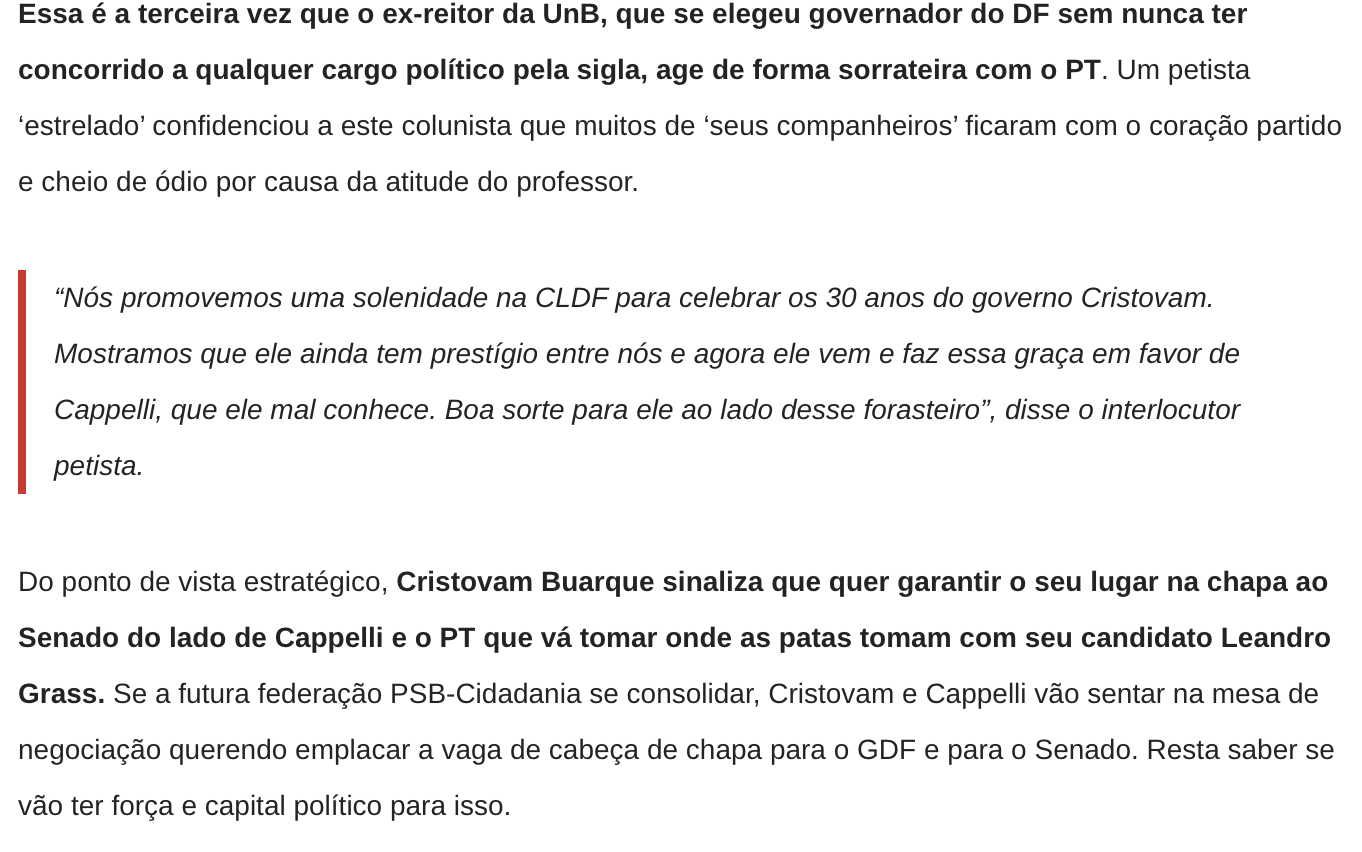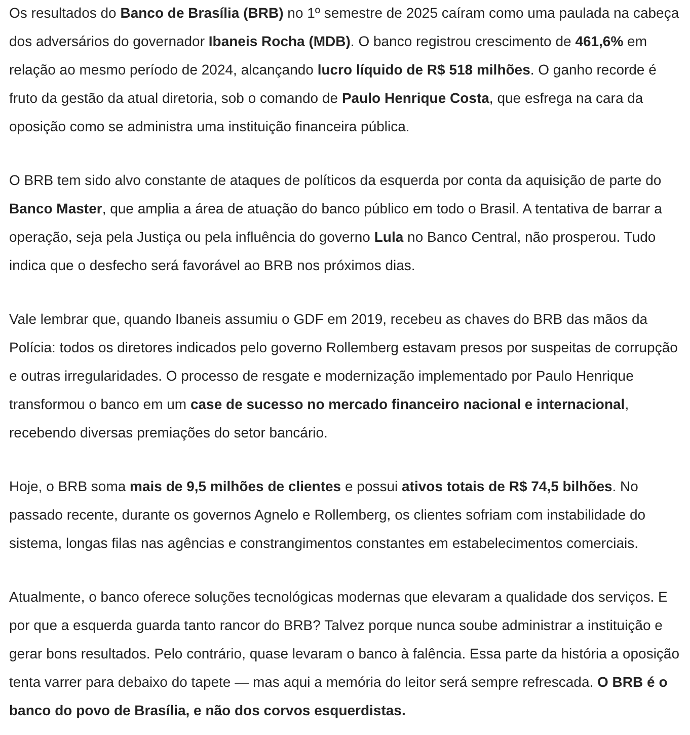 José Fernando Vilella BRB esfrega lucro recorde na cara dos adversários do Governo Ibaneis 6 de setembro de 2025 COMPARTILHAR AGORA FacebookXPinterestWhatsApp Mais emJosé Fernando Vilella Michelle e Bia insistem em chapa puro sangue ao Senado... Encontro entre Vorcaro e Lula no Planalto desmonta discurso da... Cármen Lúcia deve decidir sobre mudança da Lei da Ficha... Articulação de alianças e nominatas vão dominar a pauta do... Kassab e ala do PT nacional articulam chapa Arruda-Grass ao... Bia Kicis vira a casaca, trai Michelle e declara apoio... COMPARTILHAR AGORA FacebookXPinterestWhatsApp Últimas Notícias 500 famílias do Arapoanga recebem escrituras de... Iluminação em LED chega a quase 97%... PMDF devolve segurança e autonomia a mulheres... Nova frota: Distrito Federal se prepara para... Zoológico terá entrada gratuita neste sábado somente... Carro da Vacina passa por área rural...