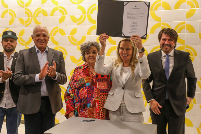 A cerimônia celebrou a sanção da lei que autorizou uso, por 35 anos, de um terreno localizado no Eixo Monumental, no chamado Setor de Divulgação Cultural (SDC), para a construção da sede da entidade.