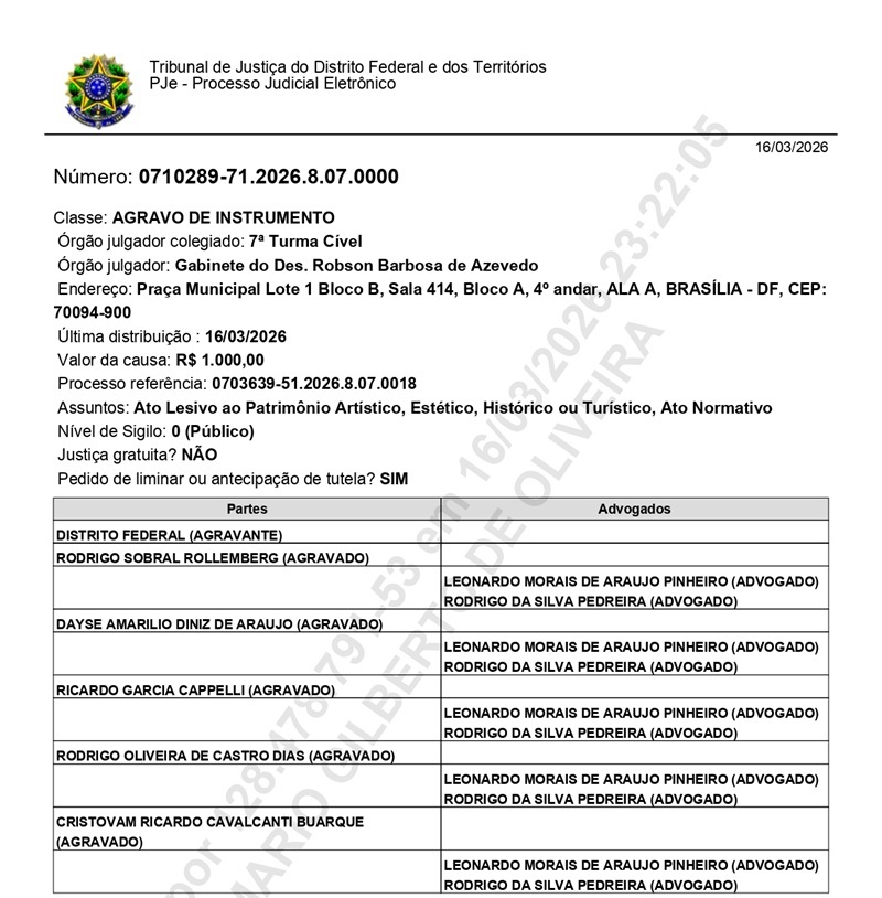 A ação popular que embasou a liminar é assinada por nomes como o candidato a deputado federal Rodrigo Rollemberg (PSB), o candidato a deputado federal Cristovam Buarque (Solidariedade), o candidato a governador Ricardo Cappelli (PSB) e a candidata a deputada distrital Deyse Amarilio (PSB).