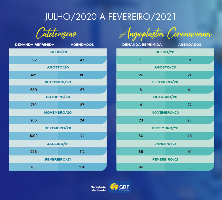 A rede pública de saúde do Distrito Federal conseguiu reduzir a fila de espera por cateterismo e angioplastia coronariana. Em dezembro de 2020, havia 1.192 pacientes aguardando por cateterismo e 80 por uma angioplastia. Hoje, a demanda reprimida está em 467 e 44 pessoas, para os respectivos procedimentos. Atualmente, o paciente internado tem seu exame agendado para até 72 horas após o pedido.