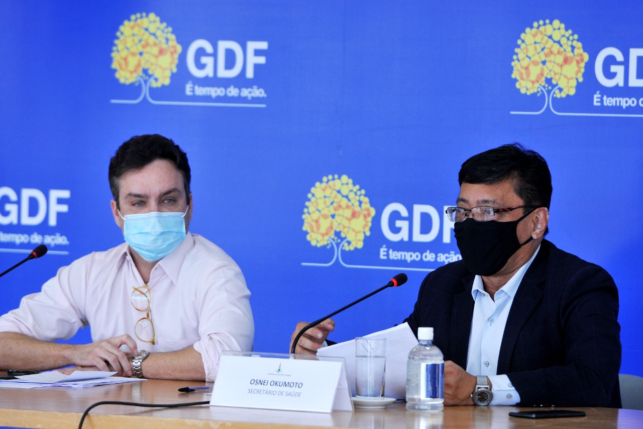 Ao lado do secretário de Saúde, Osnei Okumoto, Rocha também falou do sucesso da vacinação. Segundo ele, 122% das pessoas com mais de 80 anos tomaram a primeira dose da vacina, percentual que chega a 106% no grupo de idosos que estejam em abrigos. “Tem mais de 100% por causa dos moradores do Entorno”, justifica.