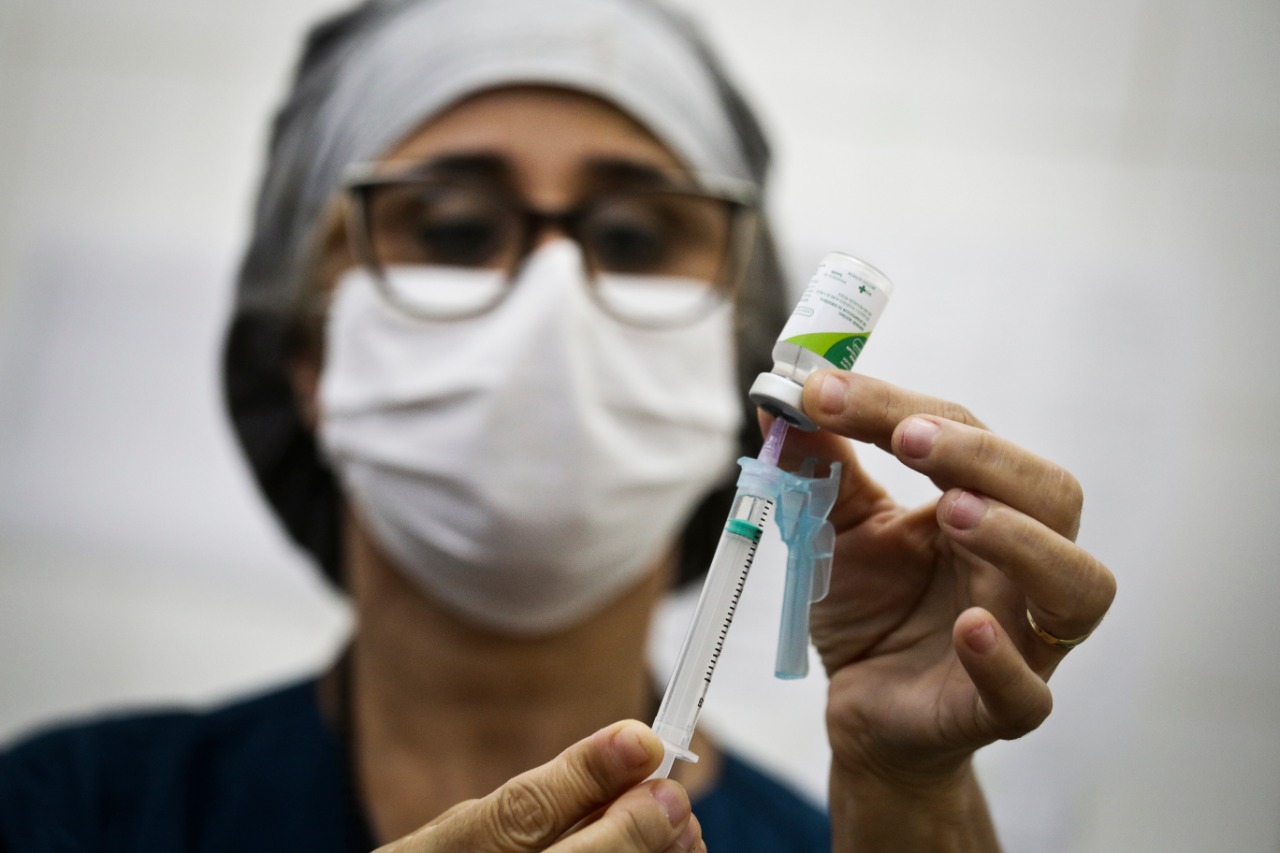 Caso a pessoa tenha tomado primeiramente a vacina contra a influenza, é necessário aguardar o prazo de 14 dias para receber a dose contra a covid-19| Foto: Breno Esaki/Agência Saúde