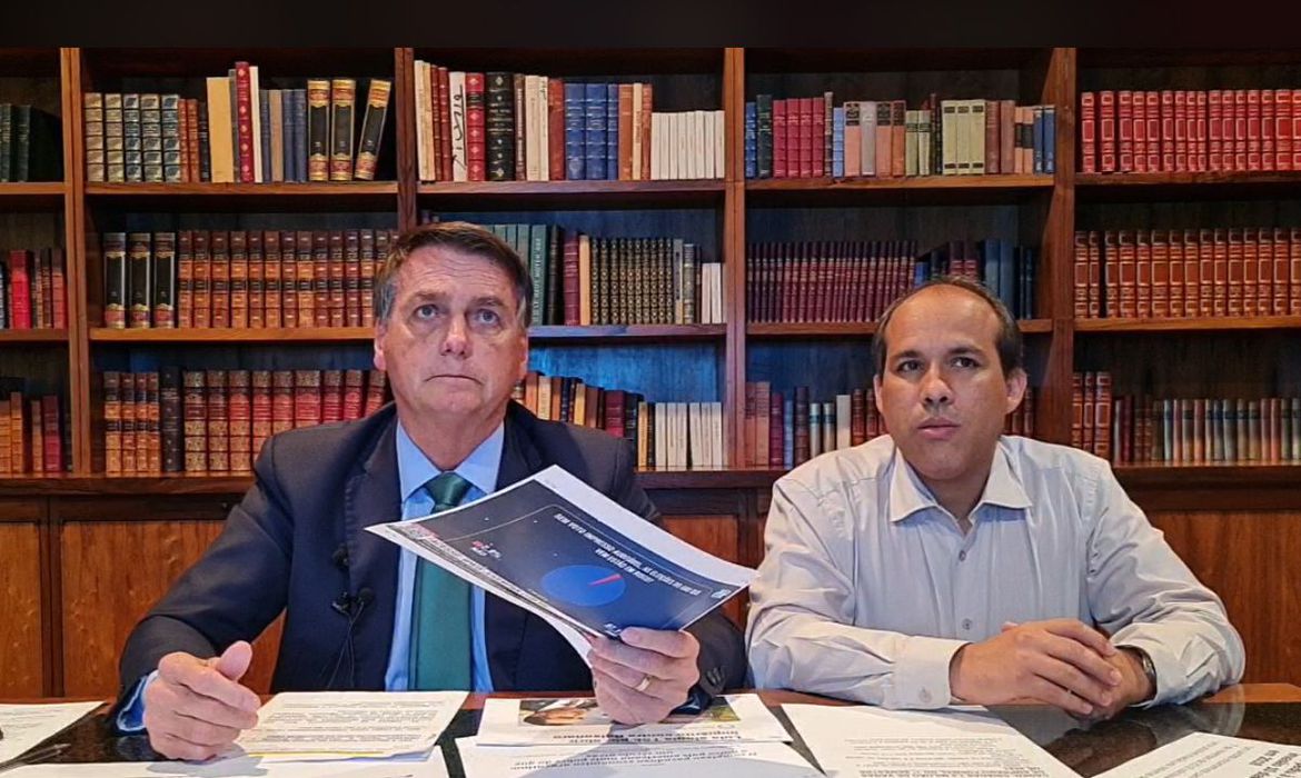 Jair Bolsonaro justificou o fato de o aumento de recursos para o Auxílio Brasil não estar na peça orçamentária deste ano. “O Auxilio Brasil são R$ 12 bilhões por mês. Então esse recurso se a gente colocasse agora na peça orçamentária eu ficaria sem propor mais nada”, disse ele citando medidas que teriam de ser retiradas como a isenção de PIS/Cofins para gasolina, diesel e álcool. “Que está mantida zero para o ano que vem”, prometeu o então presidente.