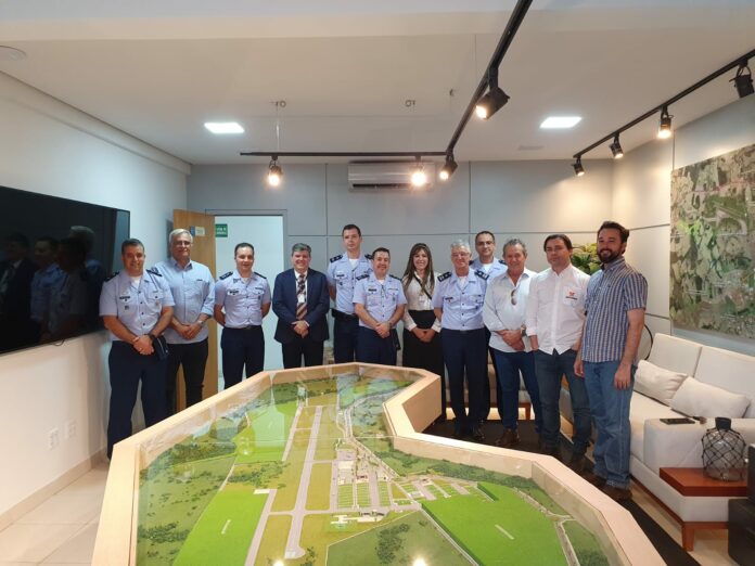 Oficiais da Aeronáutica Brasileira e professores da Universidade Federal de Goiás (UFG) fizeram, na última quinta-feira (23), uma visita proveitosa ao escritório comercial do Antares Polo Aeronáutico, que está sendo construído em Aparecida de Goiânia. Na oportunidade, com o apoio visual da maquete do empreendimento, eles conheceram detalhes sobre o projeto por meio de uma apresentação feita por alguns dos sócios-empreendedores do Antares.