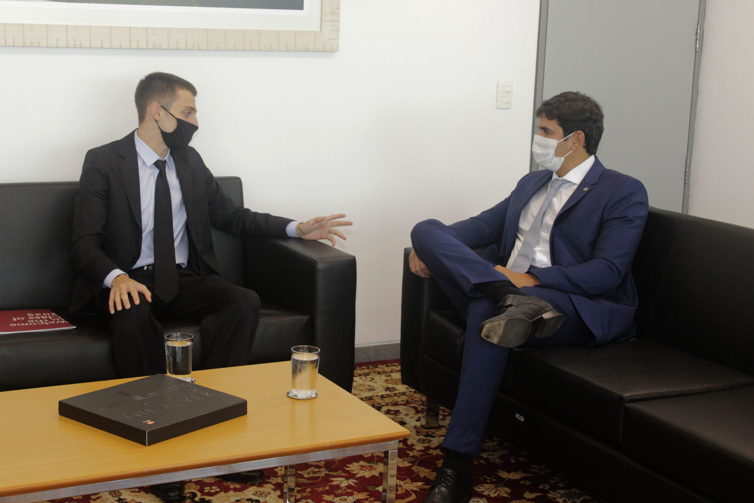 Na tarde desta terça-feira (9), o presidente da Câmara, deputado Rafael Prudente (MDB), recebeu Eduardo Vasconcelos Goyanna Filho, estudante brasiliense aprovado para ingressar na universidade de Harvard, Estados Unidos, neste ano. Na reunião, comemoraram a aprovação e discutiram o papel da educação na formação de jovens cidadãos.