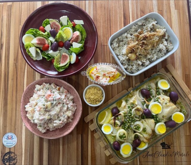 Já para o réveillon, a chef criou um cardápio típico para a data. O menu tradicional (R$ 1900,00) foi elaborado com arroz de lentilha, farofa de cebola e manteiga, bacalhau à Gomes de Sá, maionese de legumes, salada de folhas variadas e molho para a salada. A opção vegana (R$1200,00) acompanha arroz com lentilha, farofa de cebola com azeite, berinjela assadas com tomates, azeitonas e aspargos, salada de brócolis e couve-flor, pão italiano e tiras de abobrinha na lenha.