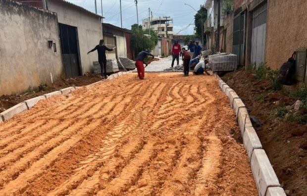Durante a temporada de chuvas, as obras seguiram com serviços como execução de calçadas, meios-fios, bocas de lobo e pavimentação em áreas viáveis.