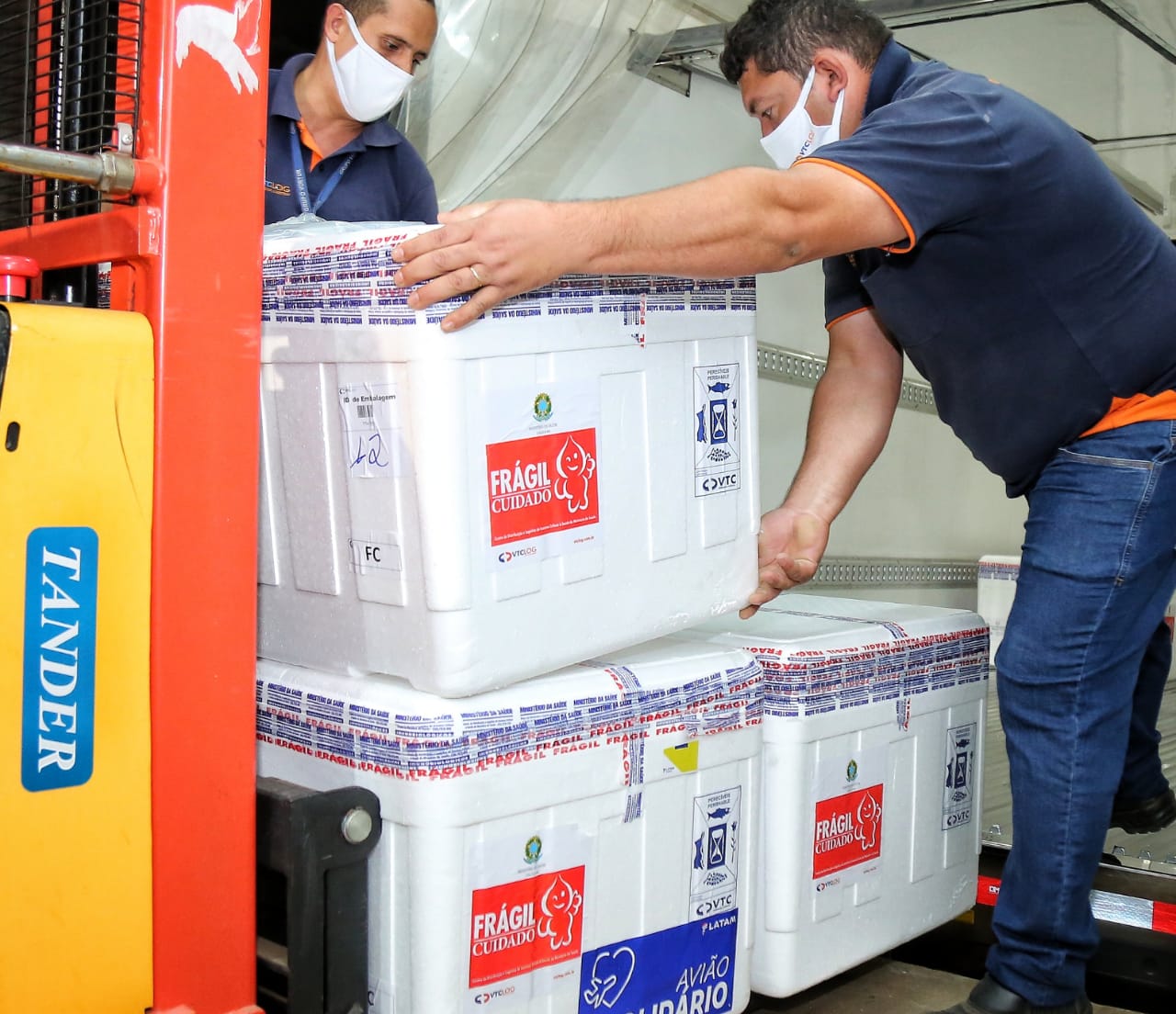 O desembarque do novo lote ocorreu no Aeroporto Internacional Santa Genoveva, pouco depois da meia-noite. De lá, as doses seguiram para a Central Estadual de Rede de Frio da Secretaria de Estado da Saúde de Goiás (SES-GO).