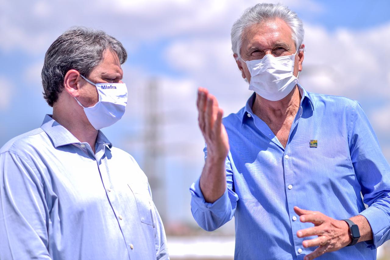 Ao lado do ministro da Infraestrutura, Tarcísio Gomes de Freitas, Caiado entrega trecho reformado da BR-414, no distrito de Vila Taveira, em Niquelândia. Obra compreende 96 quilômetros da rodovia e conta com investimento federal de R$ 44,8 milhões