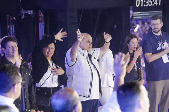 O governador Ibaneis Rocha participou, na noite deste sábado (30), do Desperta Brasil — evento religioso que mobiliza cerca de 70 mil pessoas na Arena BRB Mané Garrincha. Com 19 horas de programação ininterrupta, o encontro reúne momentos de oração, missas, shows e outras atividades de fé. Também estava presente a primeira-dama, Mayara Noronha Rocha.