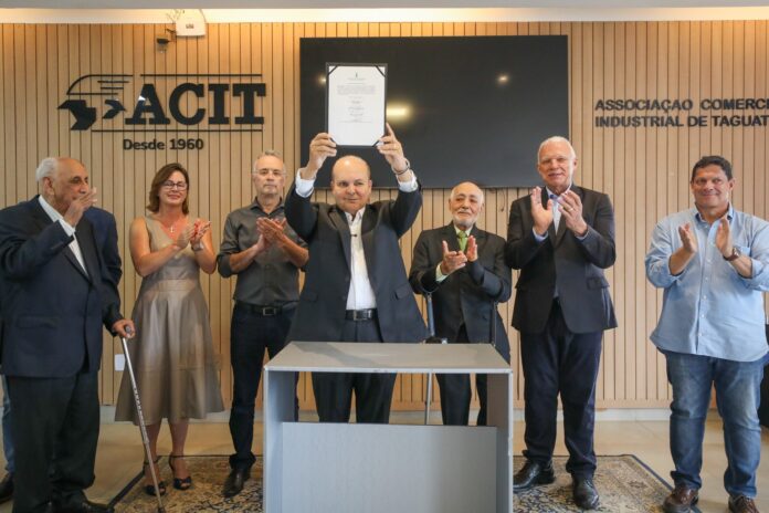 O Governo do Distrito Federal (GDF) formalizou, nesta quinta-feira (27), um marco aguardado há décadas pelo setor produtivo de Taguatinga: a entrega da escritura pública de concessão de direito de uso à Associação Comercial e Industrial de Taguatinga (Acit). O documento, entregue pelo governador Ibaneis Rocha, regulariza oficialmente a ocupação da entidade, instalada há cerca de 50 anos no setor industrial da região.