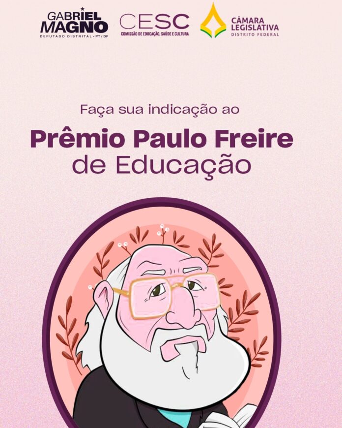 Brasília, 14 de agosto – As inscrições para o 1º Prêmio Paulo Freire de Educação, lançado pela Câmara Legislativa do DF, serão encerradas no próximo dia 15. O objetivo da premiação é reconhecer publicamente e oficialmente, por meio da Comissão de Educação, Saúde e Cultura (Cesc), profissionais de ensino, estudantes, estudiosos e ativistas que se destacaram por suas contribuições na promoção do direito à Educação, na gestão democrática, no Plano Distrital de Educação e em projetos políticos-pedagógicos que influenciem de forma positiva as escolas públicas do DF.