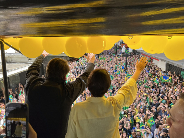 Bolsonaro estava acompanhado da primeira-dama Michelle Bolsonaro e do seu candidato a vice-presidente na chapa, general Braga Netto