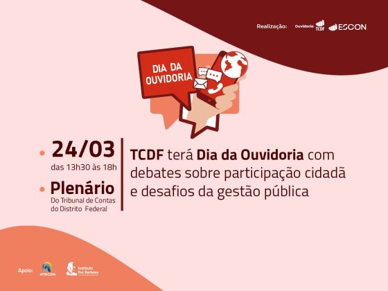 Nesse contexto, o TCDF realiza, no dia 24 de março, das 13h30 às 18h, o Dia da Ouvidoria 2026, evento que reunirá especialistas e representantes de órgãos públicos do Distrito Federal para discutir como a participação do cidadão fortalece o controle das contas públicas e contribui para aprimorar a gestão governamental.