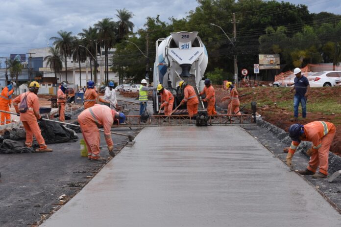 As obras de duplicação do trecho 6 da Estrada Parque Indústrias Gráficas (Epig) avançam conforme o cronograma estabelecido pela Secretaria de Obras e Infraestrutura. Nesta segunda-feira (24), foram utilizados 50 metros cúbicos de concreto para a pavimentação da nova pista. O secretário de Obras e Infraestrutura, Valter Casimiro, esteve presente no local para inspecionar o andamento dos serviços.