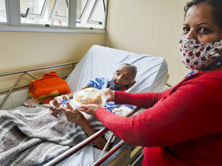 Com poucas horas na unidade, a paciente logo conquistou médicos e enfermeiros. Virou o xodó do hospital. No dia seguinte, ao saber da alta, a equipe preparou a surpresa e comemorou com ela.