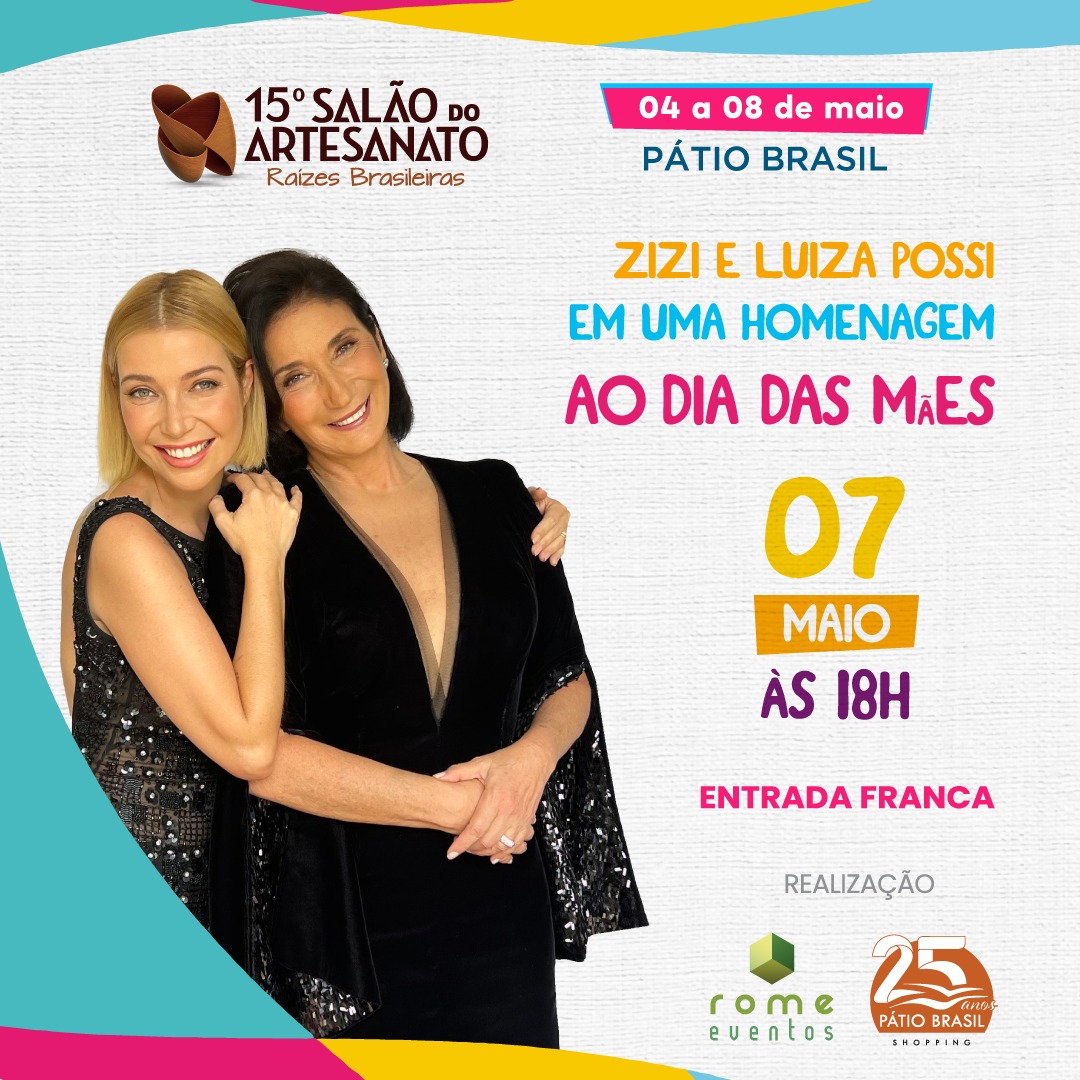 O 15º Salão do Artesanato, que acontece em Brasília, de 4 a 8 de maio, no Pátio Brasil Shopping, será palco do show gratuito de Zizi Possi e Luiza Possi, em homenagem ao Dia das Mães. O espetáculo acontece no dia 7, às 18h, e marca também o início das comemorações de 25 anos do Pátio, que vai trazer de volta ao público grandes eventos culturais até o fim do ano.