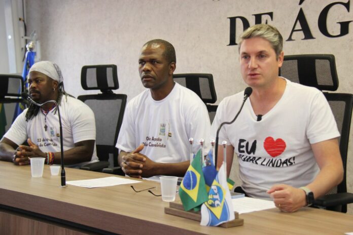 O capoeirista e diretor executivo da Secretaria Municipal de Educação, Israel Souza, iniciou a cerimônia destacando a importância do evento e da aprovação da lei no município.