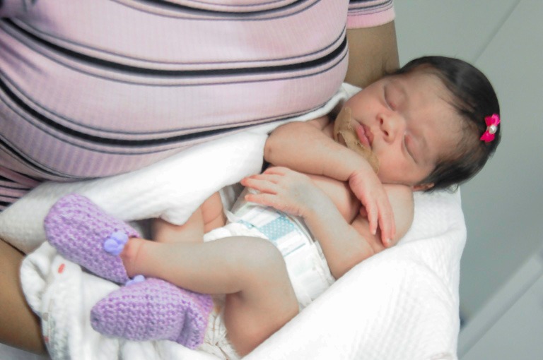 Outra que não conseguiu completar o tempo de gestação foi Edvânia Fernandes, 37 anos. Ela deu à luz à Sarah com 31 semanas de gravidez e está na Neonatologia ganhando peso há menos de um mês. Como as demais mamães, essa foi a primeira vez que a foto de sua filha não foi tirada de um celular. “Muita gratidão a Deus por honrar a minha vida e a da minha Sarah. Amor incondicional”, resume a mãe.