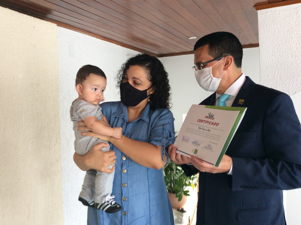 A família do pequeno Felipe Neres da Mota, de cinco meses, recebeu, nesta quinta-feira (12/11), um certificado das mãos do presidente do Instituto de Assistência dos Servidores Públicos de Goiás (Ipasgo), Hélio José Lopes, comprovando que ele foi a primeira criança do Estado a ser registrada no projeto Bebê Ipasgo. Graças ao Governo de Goiás, por meio de uma parceria inédita entre o Instituto, a Secretaria de Segurança Pública (SSP-GO)e o Tribunal de Justiça do Estado de Goiás, Felipe passou por uma biometria neonatal assim que nasceu, no dia 4 de julho, no Hospital da Mulher, em Goiânia.