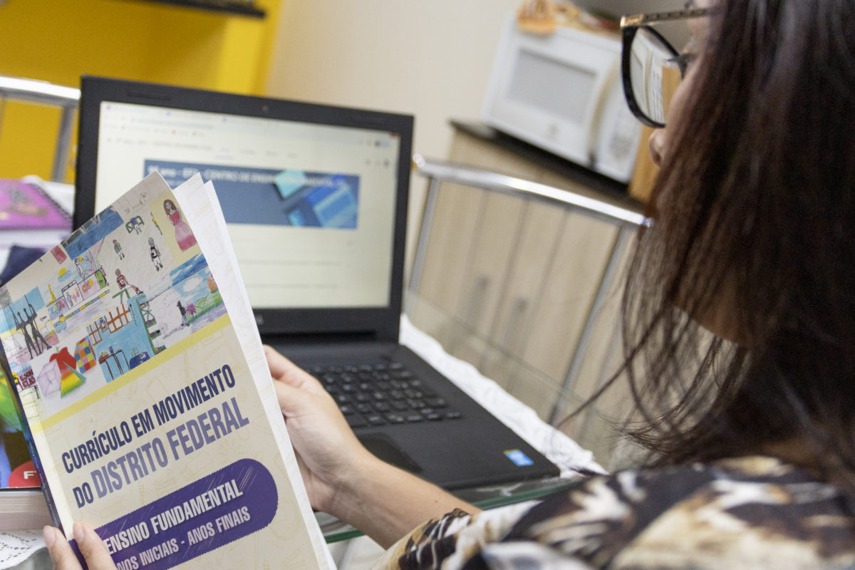 Para cerca de 30 mil professores efetivos e temporários que voltaram na última sexta-feira, hoje foi um dia para investir em novos conhecimentos. A professora de matemática e ciências do CEF 3 de Brasília, Keissy Layane Alcântara, vai aproveitar o curso da Eape G Suíte – ferramentas do Google para a educação. Na própria plataforma os professores podem encontrar exercícios das formações postados pela Eape, materiais de apoio e vídeos explicativos. No caso do curso escolhido por ela, duas lives também estão marcadas para a próxima quarta-feira, dia 10.