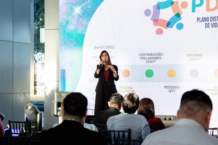 Na quarta-feira (4), a coordenadora de Ações de Qualidade de Vida e Desenvolvimento do Servidor da Sequali, Márcia Azevedo Duarte, ministrou palestra com o tema “Qualidade de Vida no Trabalho: Caminhos, Desafios e Resultados da Gestão Pública do Distrito Federal”. A apresentação abordou a importância de promover ambientes organizacionais mais saudáveis, com foco no bem-estar físico, emocional e social dos servidores.