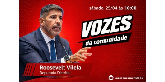 O programa Vozes da Comunidade, apresentado pelo jornalista Toni Duarte, recebe neste sábado (25) o deputado distrital Roosevelt Vilela (PL) para uma edição especial do quadro “Sabatinão do Povo”. O parlamentar conversará diretamente com a população do Distrito Federal sobre temas de interesse público.