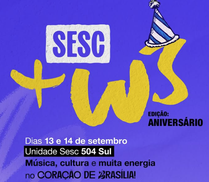 Para celebrar o aniversário do Sesc-DF em grande estilo, uma das avenidas mais tradicionais de Brasília terá um fim de semana cheio de música, grandes artistas, brincadeiras e lazer para toda a família. O tradicional Sesc + W3 – Edição Aniversário vai agitar o sábado (13) e o domingo (14), em frente à unidade Sesc da 504 Sul, com apresentações de Joyce Alane, Blitz, Fat Family, Tuyo, FBC e muito mais. E o melhor: de graça, aberto ao público.