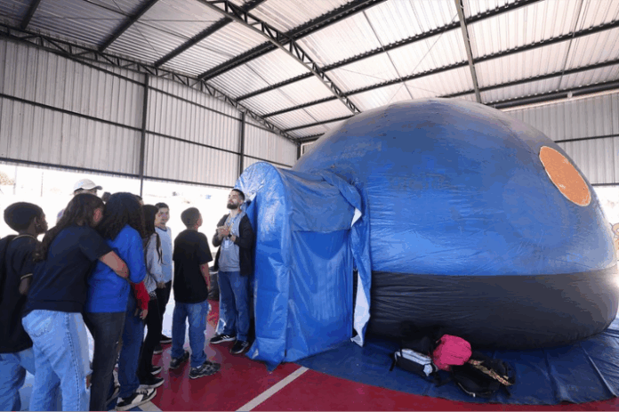 Já o Planetário -“Astronomia Sobre Rodas” – consiste em levar ao conhecimento dos alunos conteúdos sobre galáxias, estrelas e sistema solar.