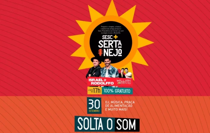 Termina nesta sexta-feira (29) o prazo para retirada de ingressos para a 1ª edição do projeto Sesc+Sertanejo, que acontece no próximo sábado (30), em Planaltina (DF). O evento gratuito será realizado no local que, em breve, abrigará a nova unidade do Sesc-DF. Na programação, estão a cantora Lia Almeida, a dupla Willian e Deivid e a atração principal: Israel e Rodolffo.