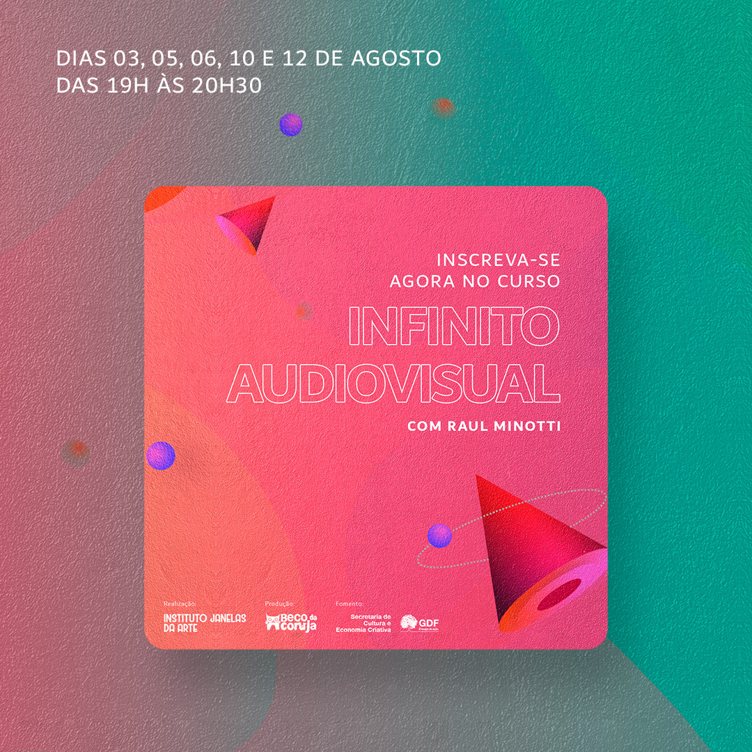 Alinhado com a modernidade e as recentes tendências do mercado cultural, o Território Criativo chega ao fim de seu calendário formativo, oferecendo três novas capacitações vinculadas ao eixo Empreendedorismo, Tecnologia e Inovação. A partir do site do projeto, pessoas interessadas podem obter informações e inscrever-se em: Infinito Audiovisual, que começa a partir de 03/08, de 19h às 20h30, com inscrições abertas até 01/08; Marketing Digital, com aulas a partir de 08/09, das 19h às 20h30, com inscrições de 13/08 a 01/09; e Trilhando o Futuro, a partir de 17/08, das 19h às 21h, com inscrições de 15/07 a 11/08.