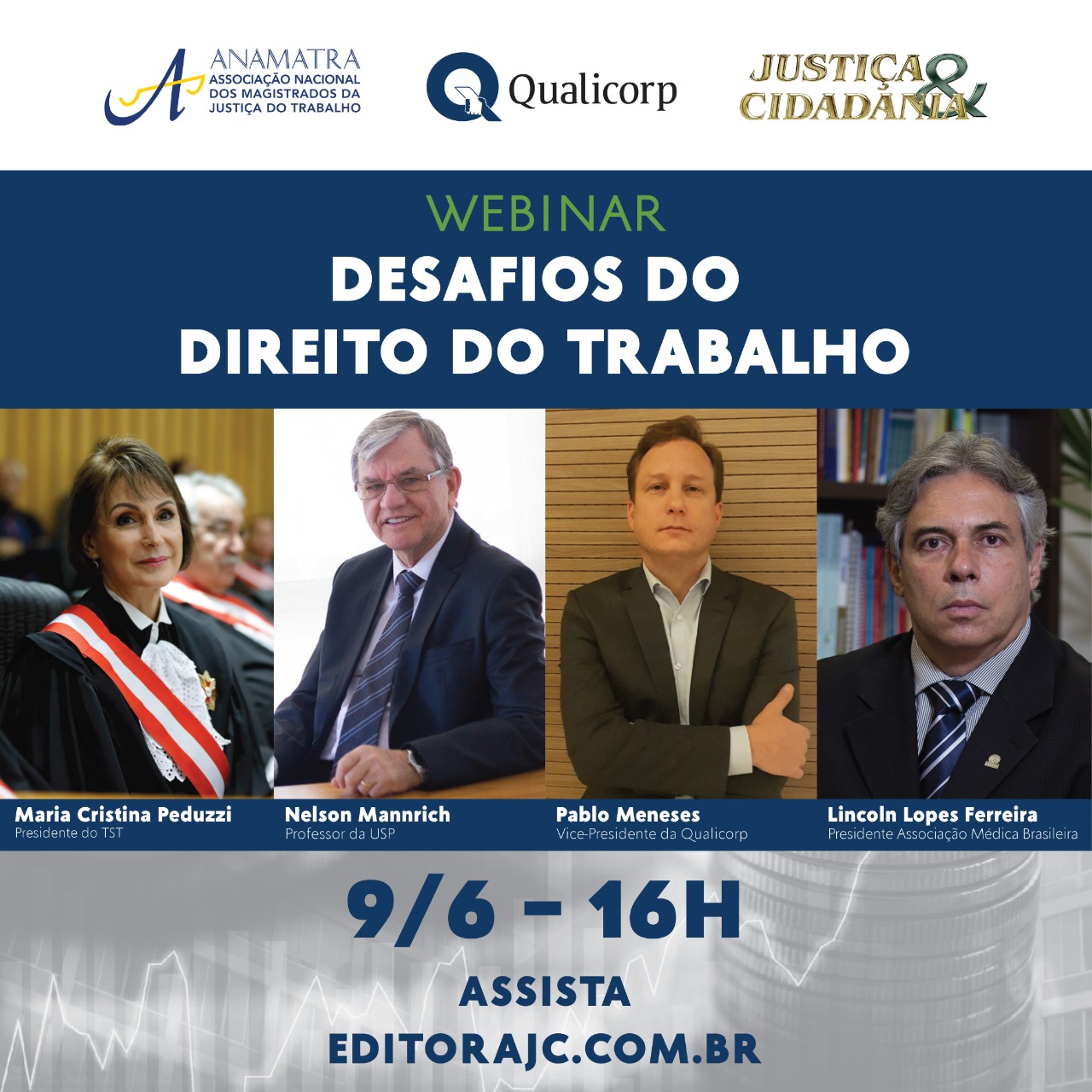 O seminário digital será transmitido ao vivo, no canal da Revista no YouTube, no dia 9/6 (terça-feira), a partir das 16h. Contará ainda com a participação do professor da Universidade de São Paulo (USP) Nelson Mannrich, do presidente da Associação Médica Brasileira, Lincoln Lopes Ferreira, e do vice-presidente da Qualicorp, Pablo Meneses.